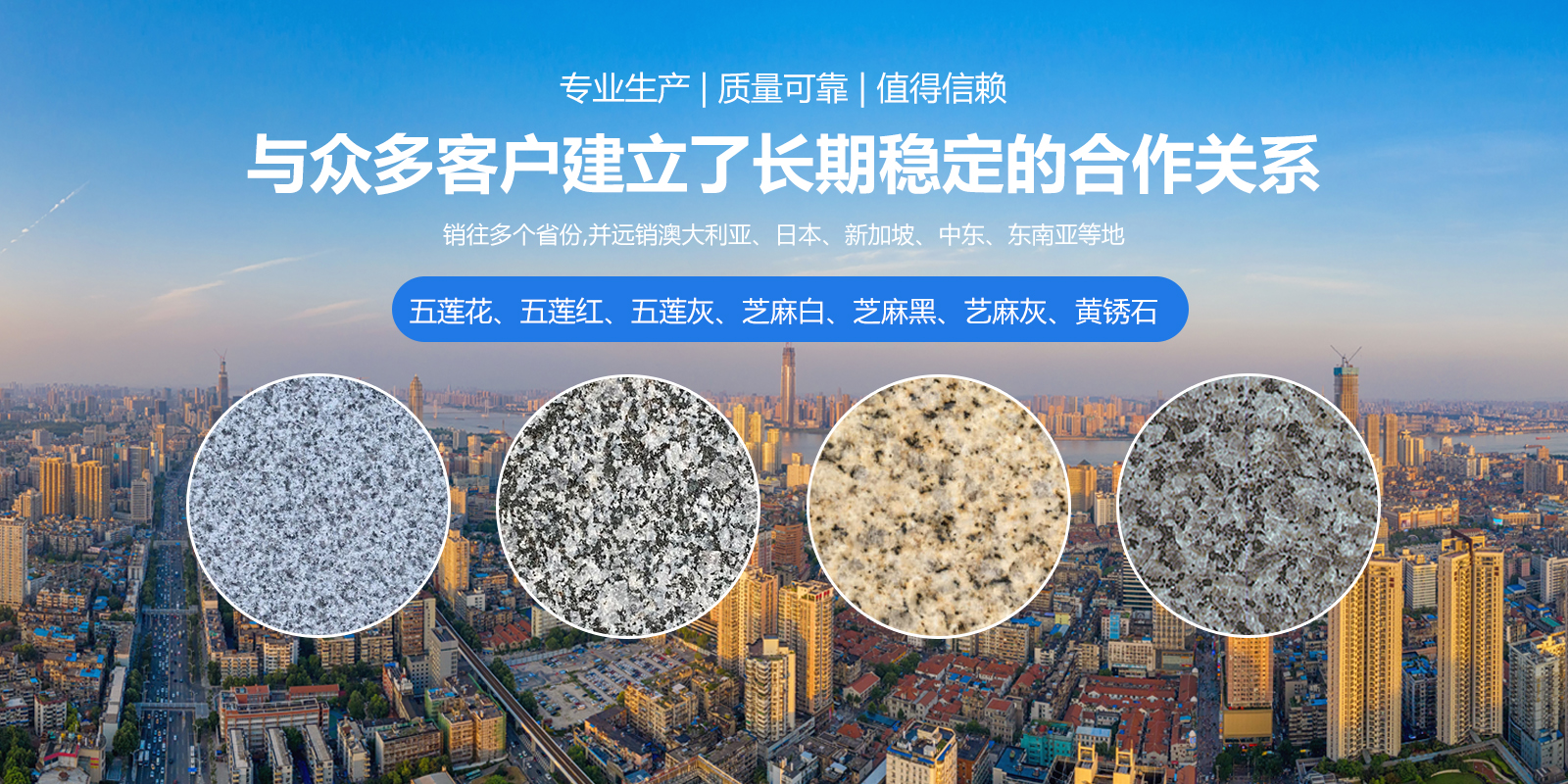 公司主营五莲花、五莲红、五莲灰、芝麻白、芝麻黑、艺麻灰、黄锈石等石材。